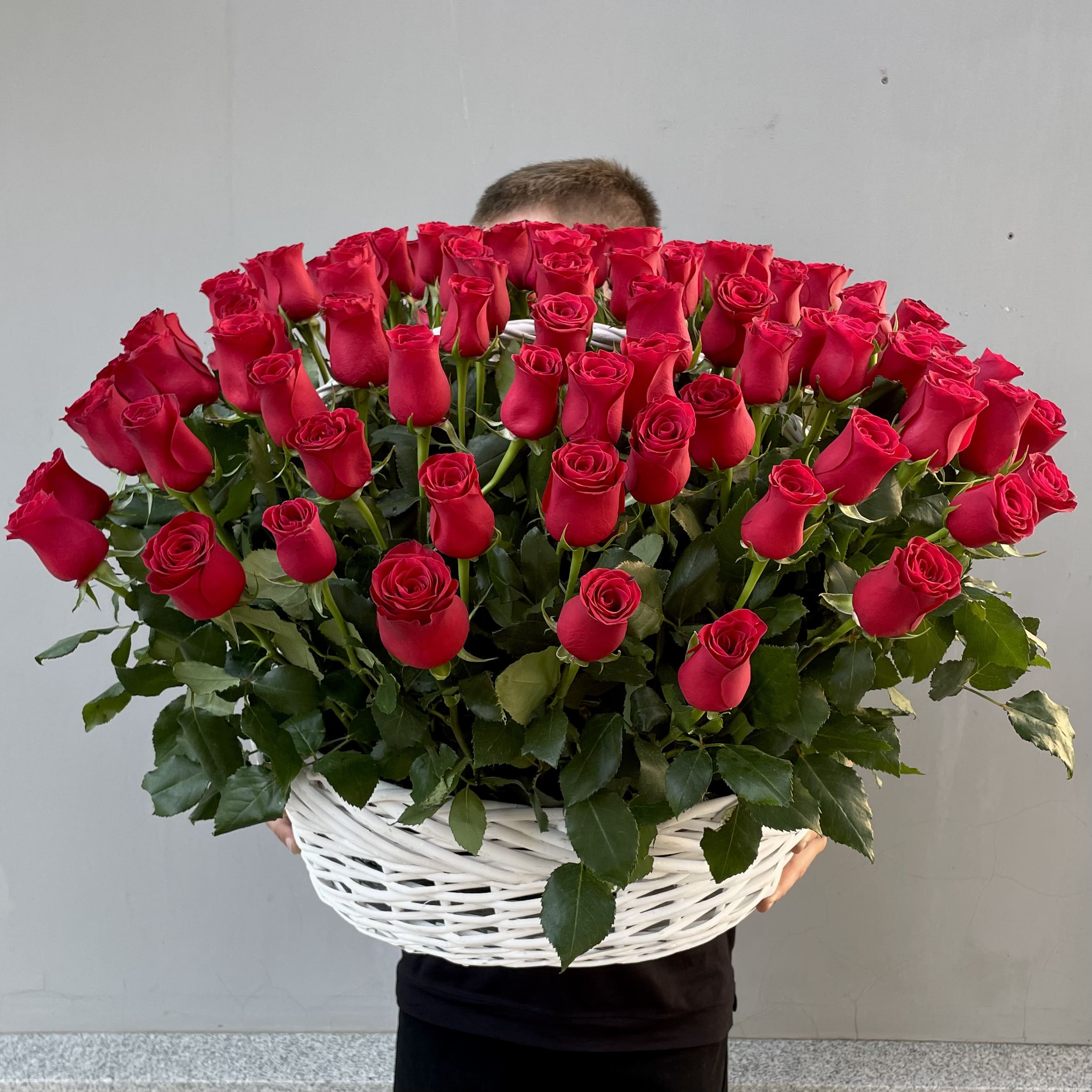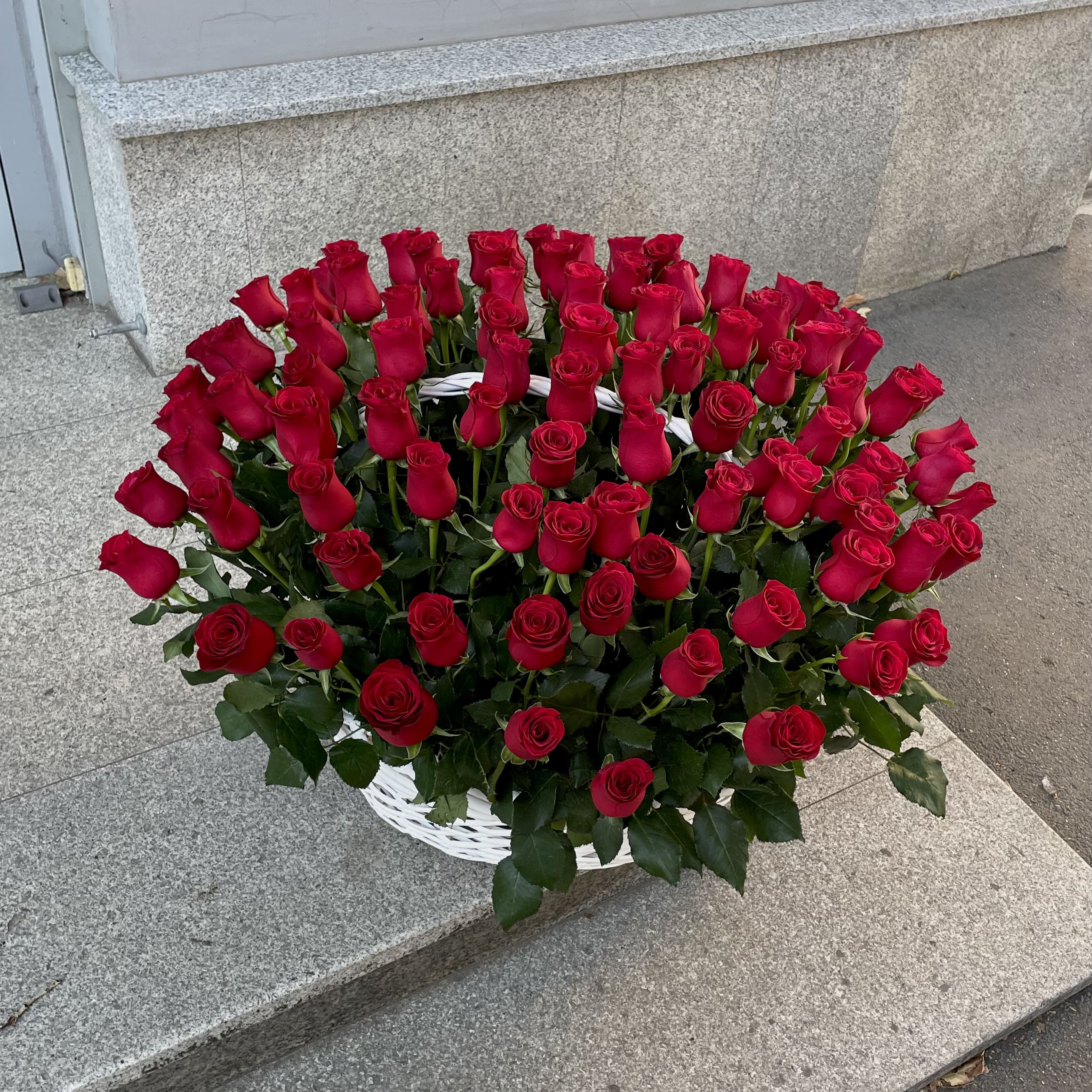 101 красная роза в корзине