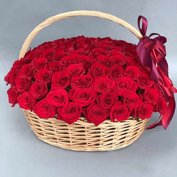 101 роза в корзине