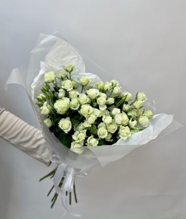 11 белых кустовых роз в матовой упаковке