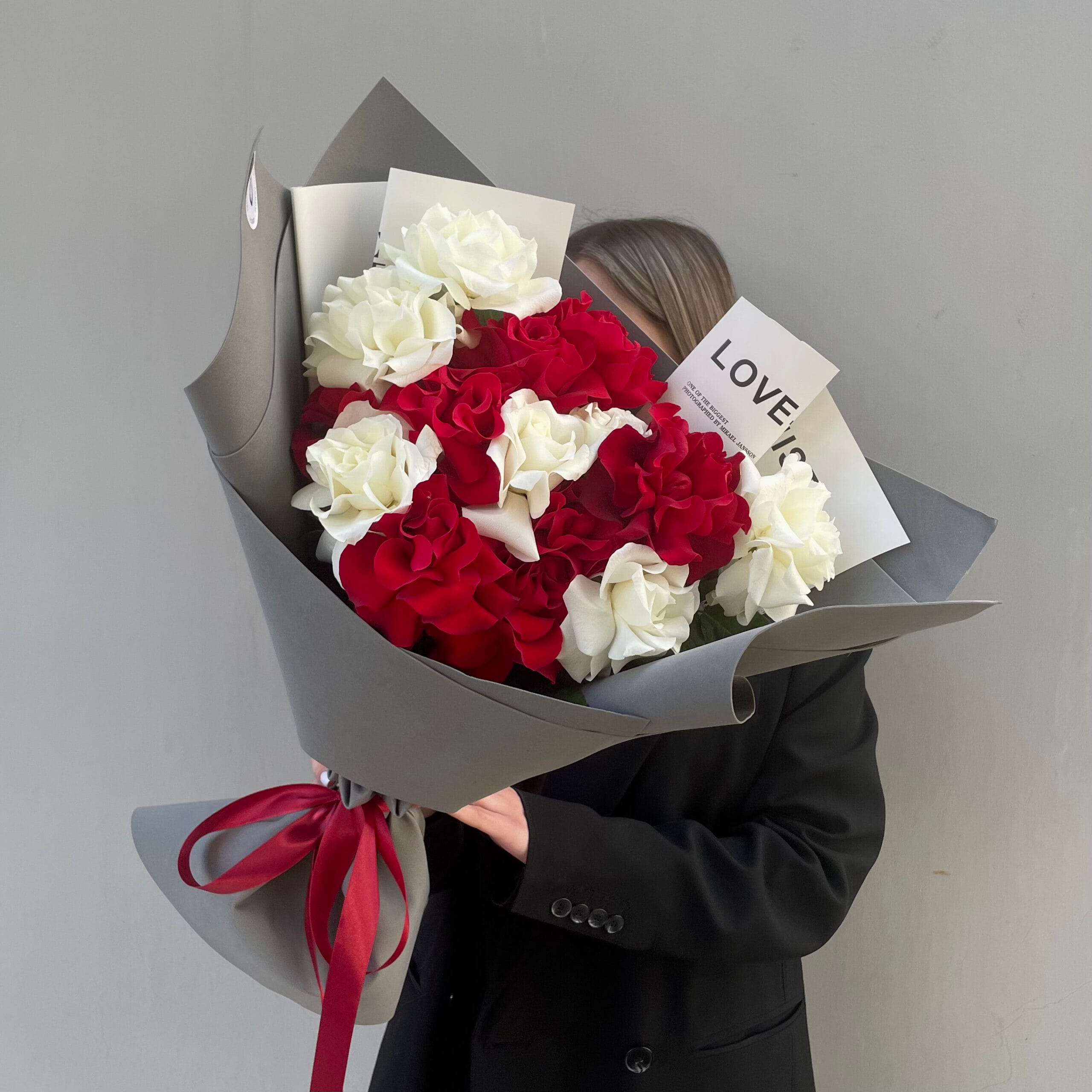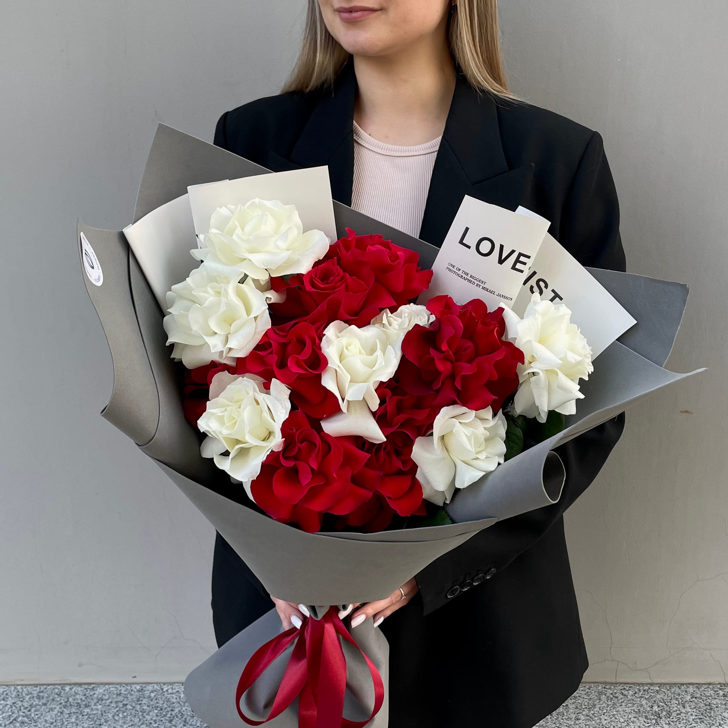 15 Французских красных и белых роз