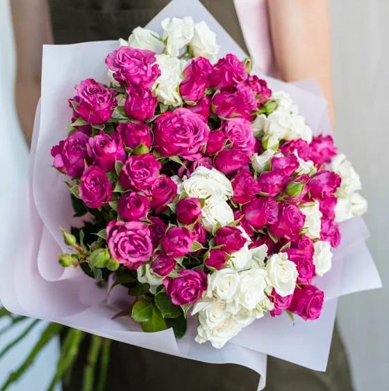 Этот букет из 15 кустовых роз в белых и малиновых оттенках станет прекрасным символом вашей нежности и любви. Насыщенные цвета создадут атмосферу праздника и радости.