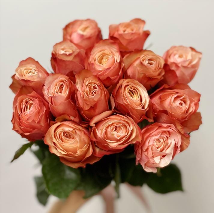 Монобукет из 15 пионовидных персиковых роз Kahala Эквадор 60 см
