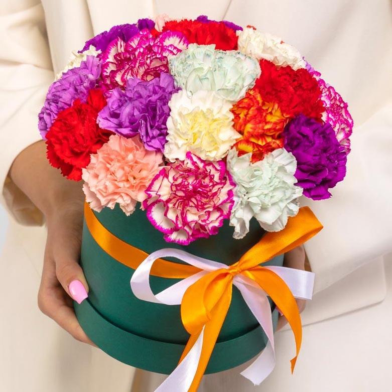 Главная Цветы в коробке 25 гвоздик микс в коробке