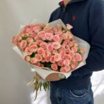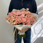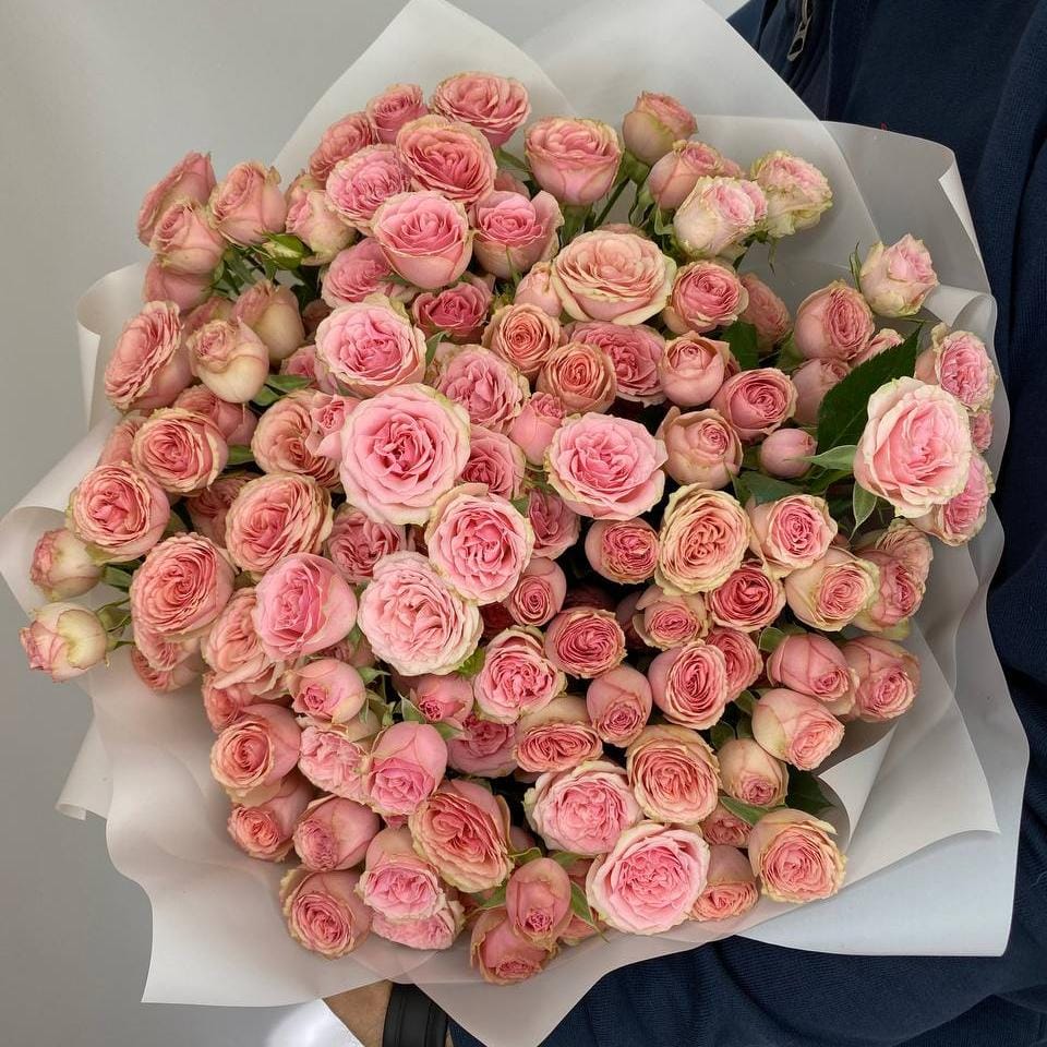 Прекрасный букет из 31 нежно-розовой кустовой розы — это замечательный подарок к любому празднику. Яркие и сочные оттенки цветов подарят вашему близкому человеку море положительных эмоций и восторга.