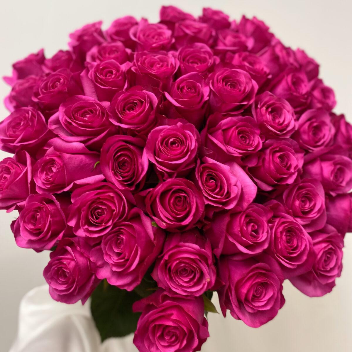 Большой монобукет из 51 крупноголовой малиновой розы Эквадор 60 см