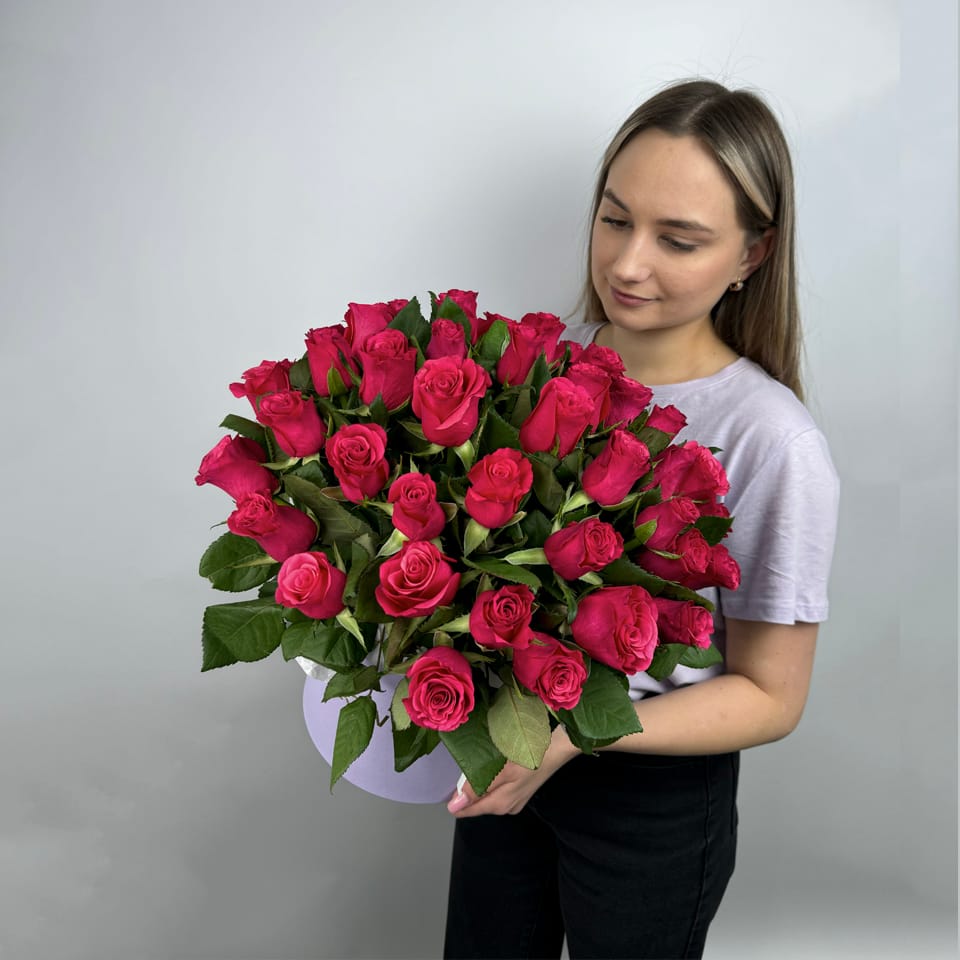 Яркие и изысканные малиновые розы в шляпной коробке – это отличный способ выразить свои чувства и эмоции. 51 малиновая роза подарит яркие впечатления и незабываемые моменты.