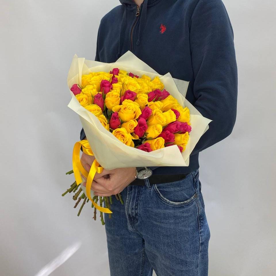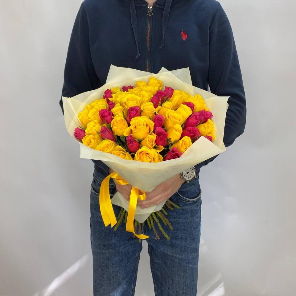 Состав: Роза Кения 40 см желтая и малиновая – 51 шт