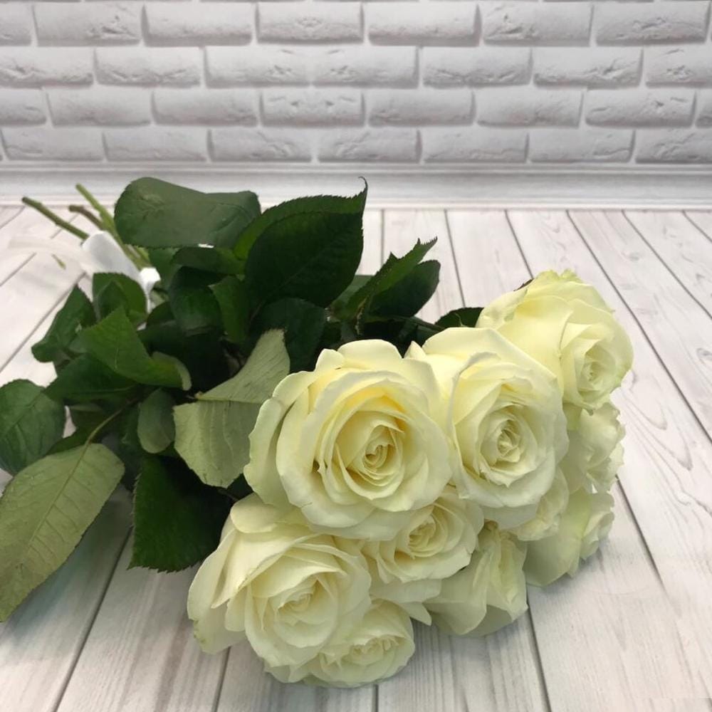 7 белых роз Эквадор 50 см