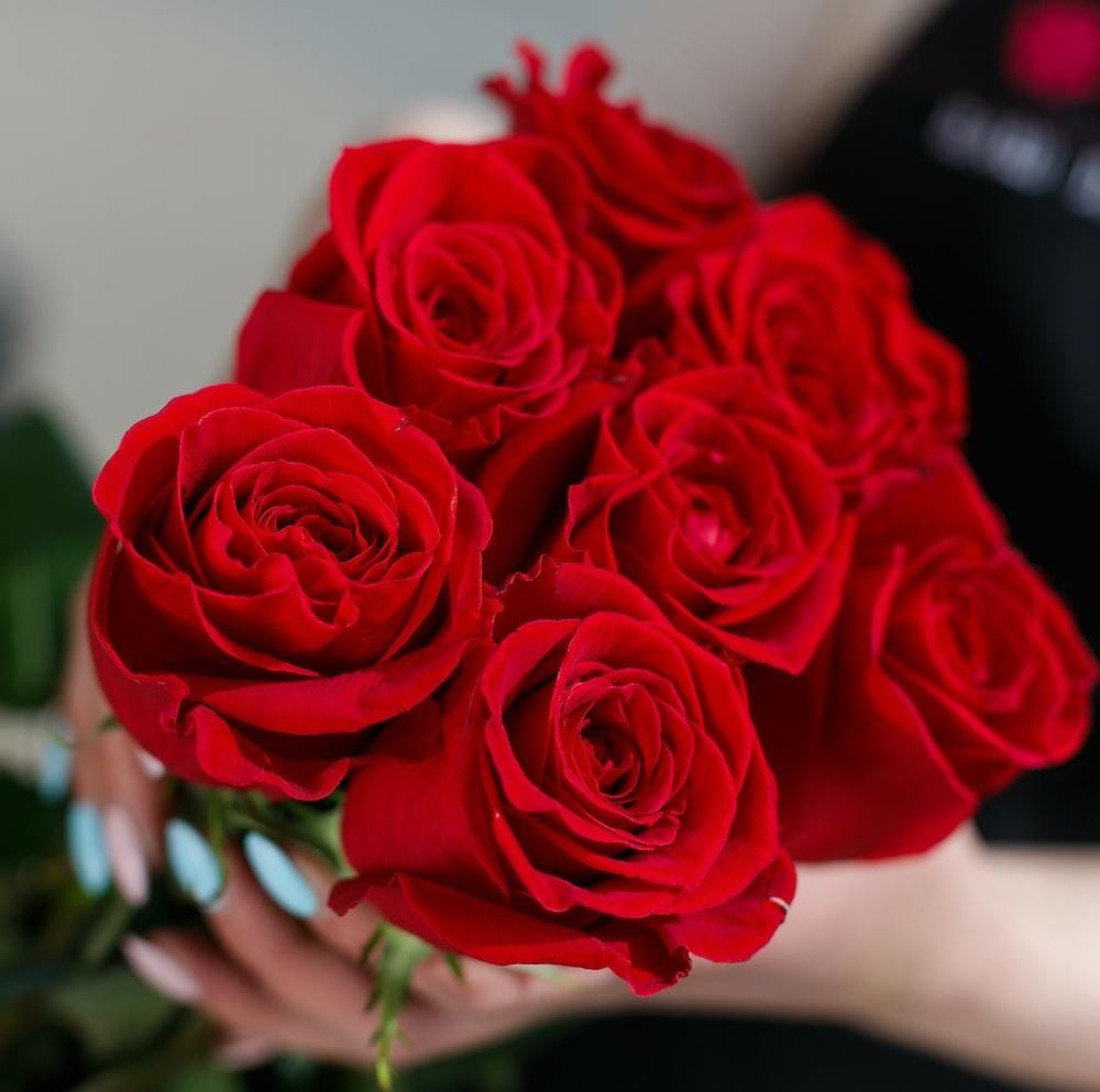 Монобукет из 7 крупноголовых красных розы Эквадор 50 см