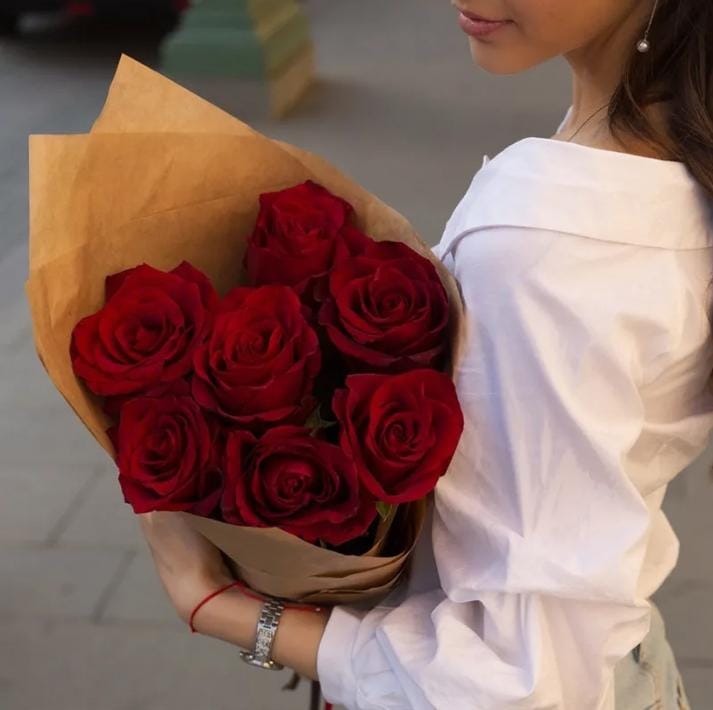 7 красных Эквадорских роз 60 см в крафте