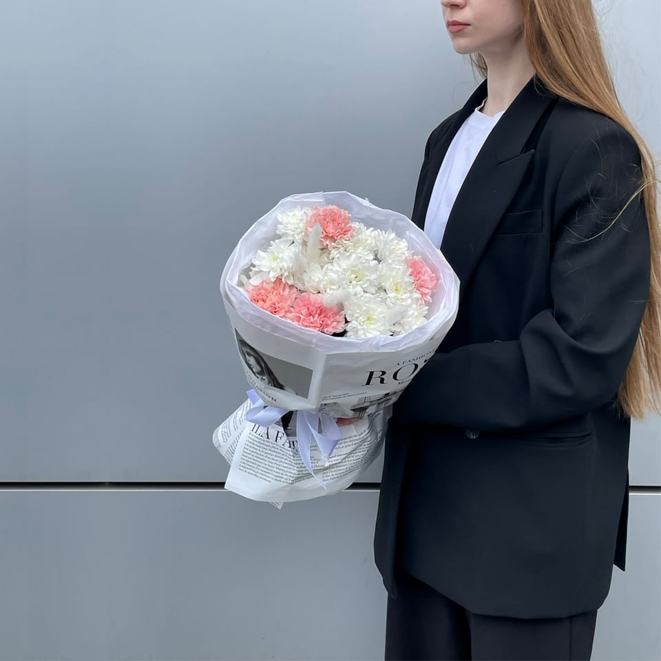 Небольшой авторский букет из стойких цветов с добавлением сухоцветов