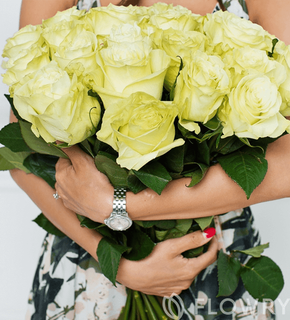 Букет 21 белая роза Эквадор