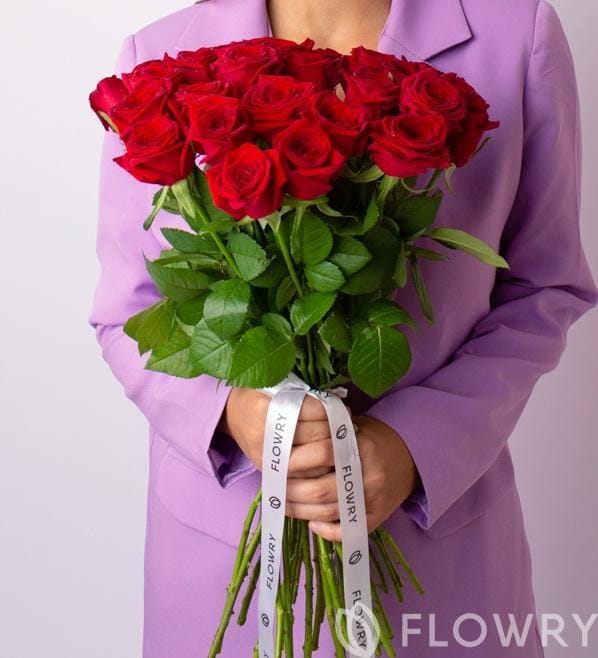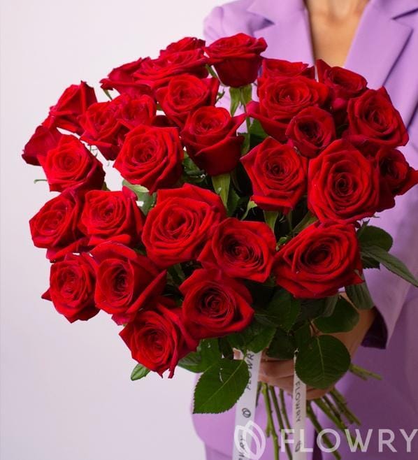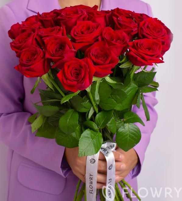 Роза Ред Наоми 50 см – 31 шт, Лента атласная