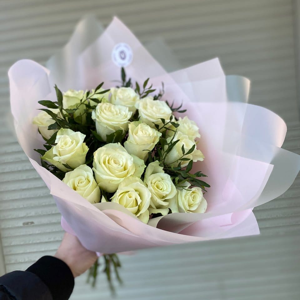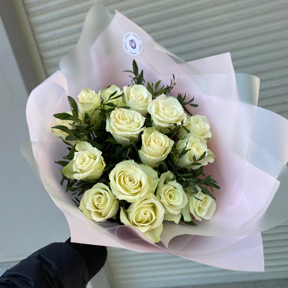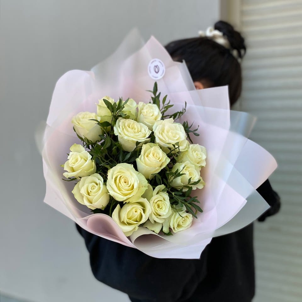 Букет Айсти собран из 15 белых роз с добавлением зелени. Этот букет станет отличным комплиментов!