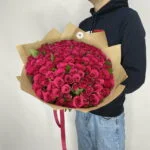 Букет, который оставляет без слов. Этот шедевр из 101 малиновой розы прекрасен в своей изысканности. Он будет символом вашей глубокой привязанности и искренних чувств.