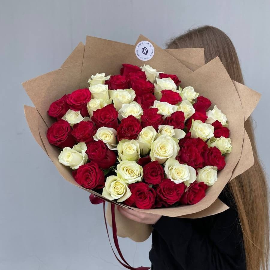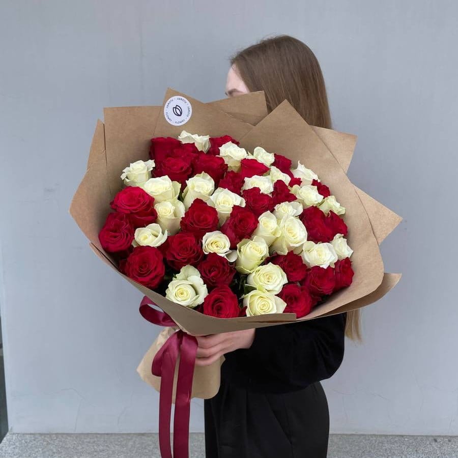 Неповторимый букет из 51 красной и белой розы порадует своим изысканным сочетанием цветов. Этот яркий букет станет прекрасным символом вашей взаимной любви и страсти.