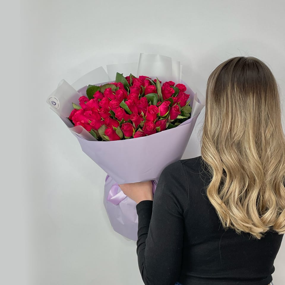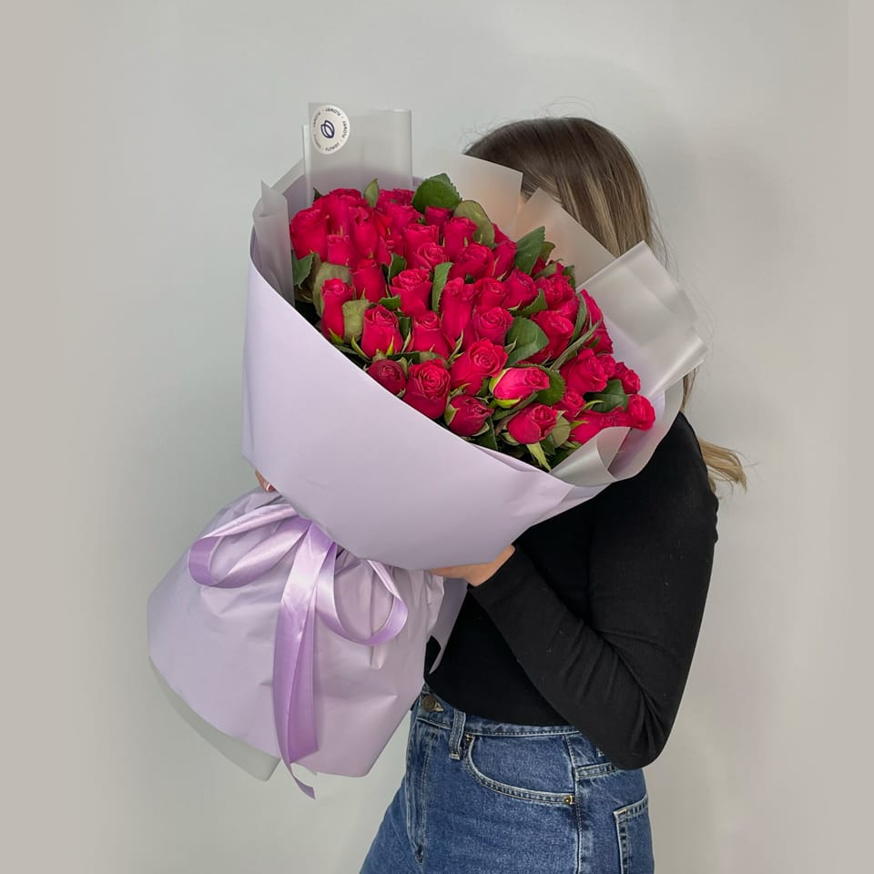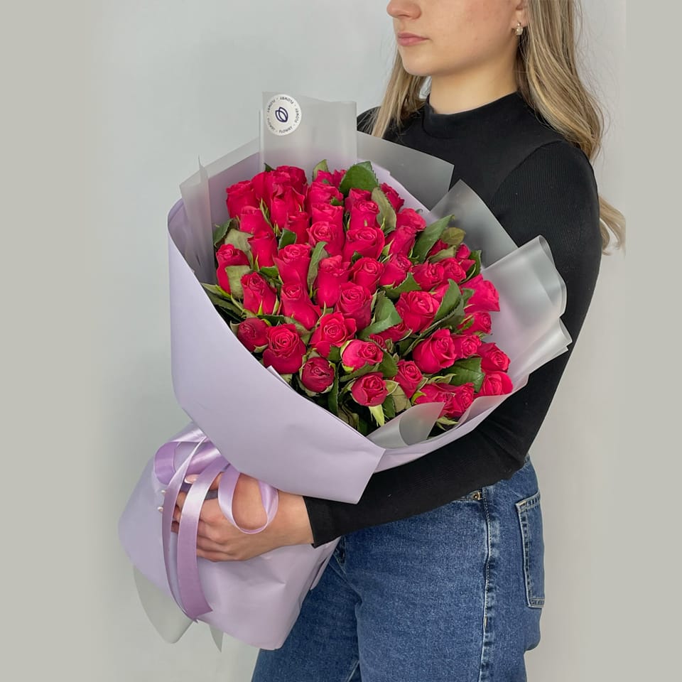 Этот букет – ода романтике и страсти. Насыщенный оттенок малиновых роз притягивает взгляды и вызывает восторг у всех, кто ценит красоту и элегантность в каждой детали.