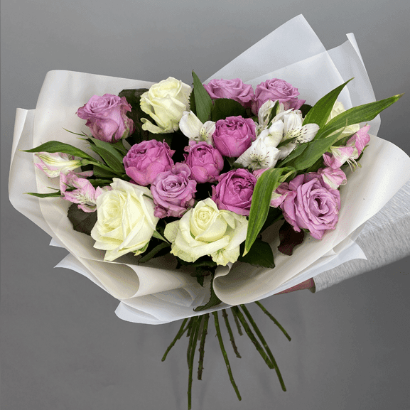 Роза Мэритим, Роза кустовая Мисти Баблс, Альстромерия, Роза Аваланш, Дизайнерское оформление