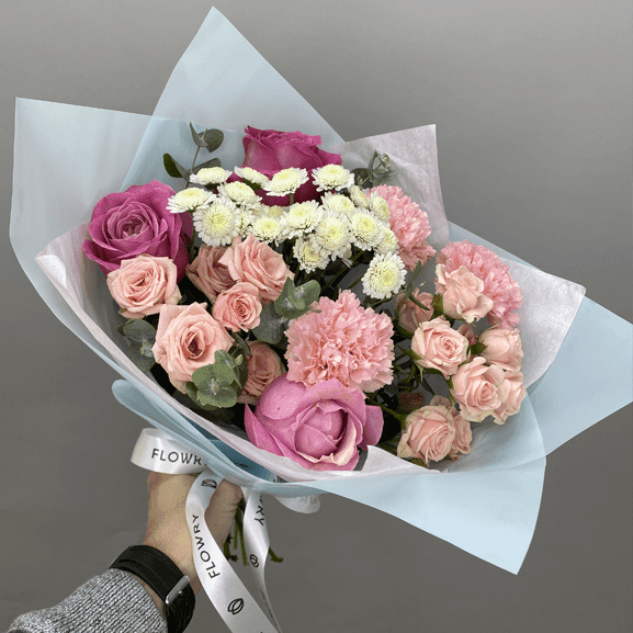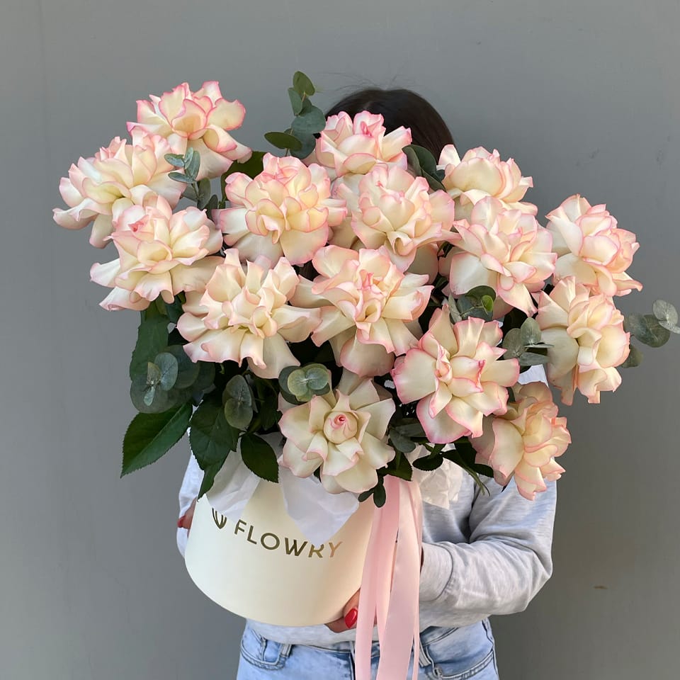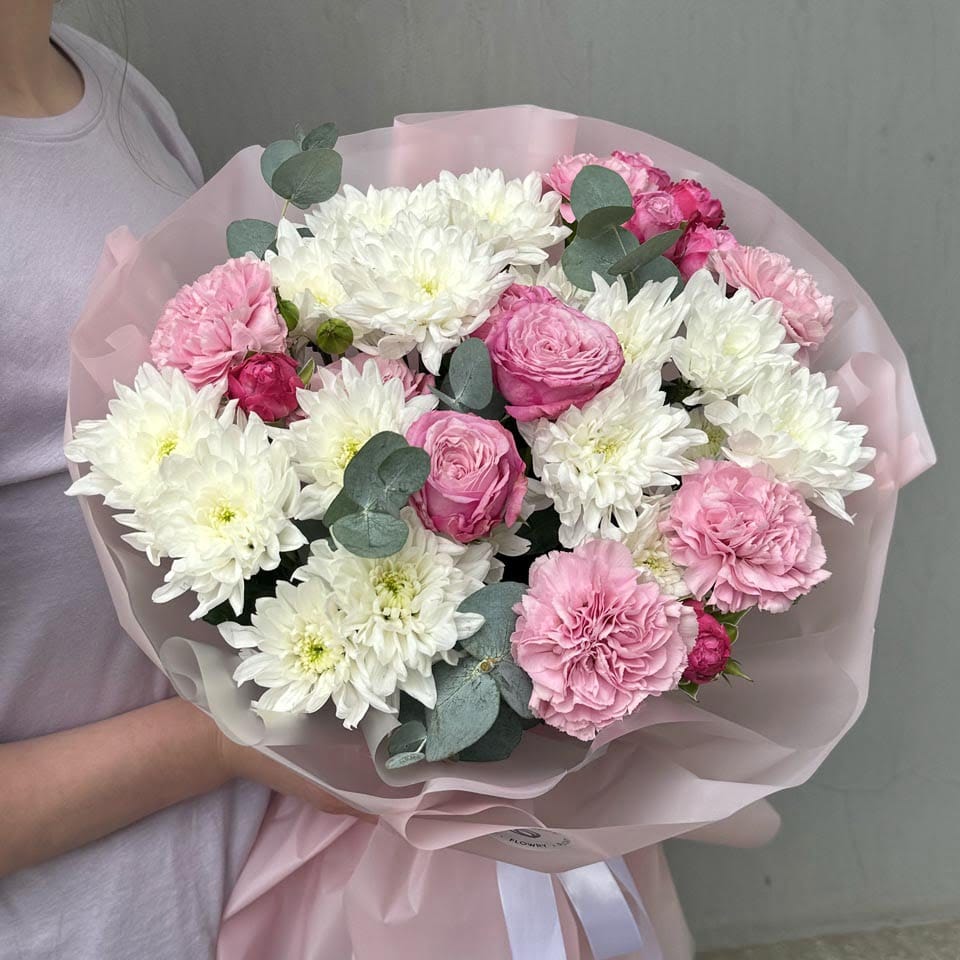 Роха одноголовая, Роза кустовая, Хризантема, Диантус, Эвкалипт, Фирменное оформление