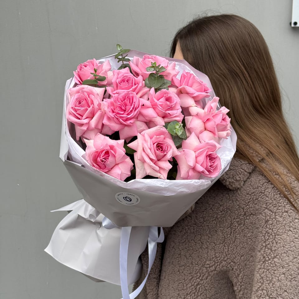 Букет из 11 вывернутых роз розового цвета