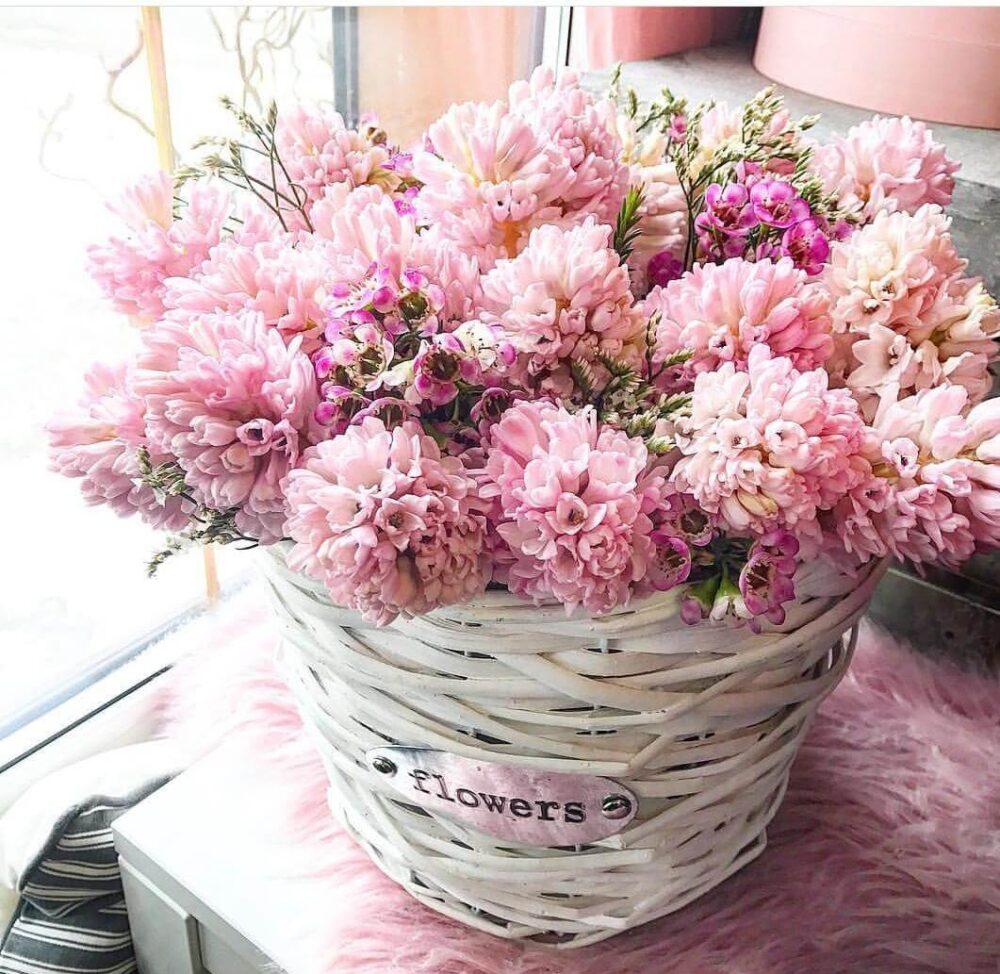 Композиция из гиацинтов в корзине