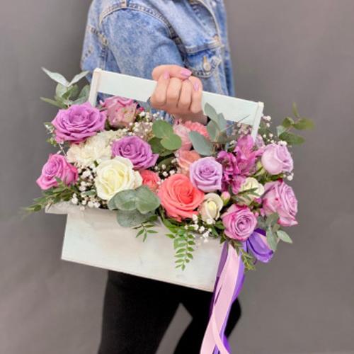 Композиция из цветов в ящике №2