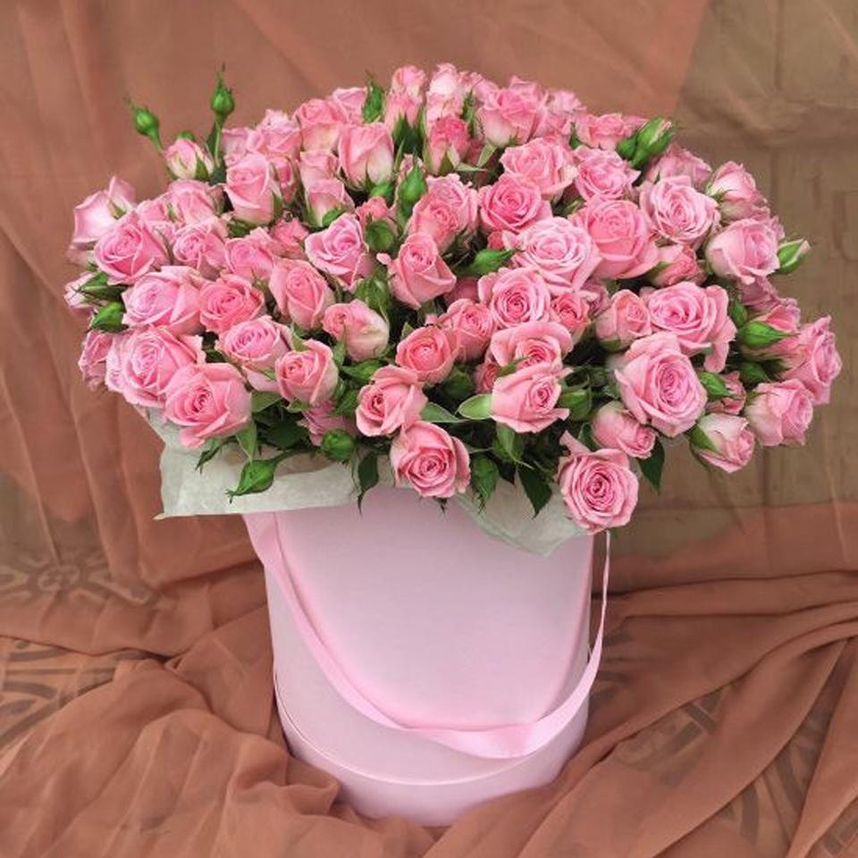 Кустовые розы в шляпной коробке 13 шт