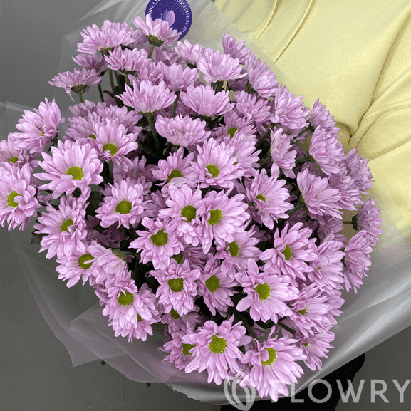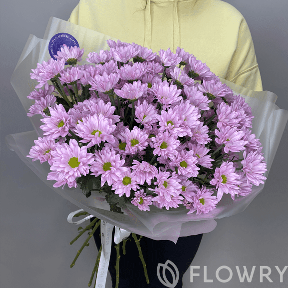 Хризантемы ромашковидные – 7 шт, Лента атласная фирменная, Пленка корейская