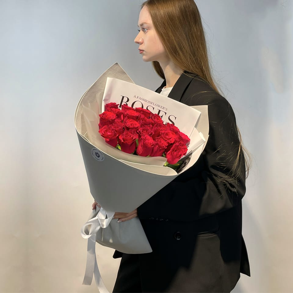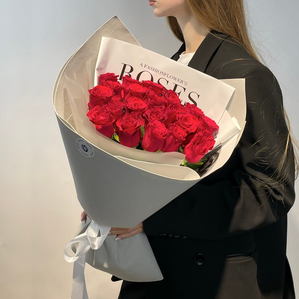 Роза красная 40 см – 21 шт Диаметр: 25см