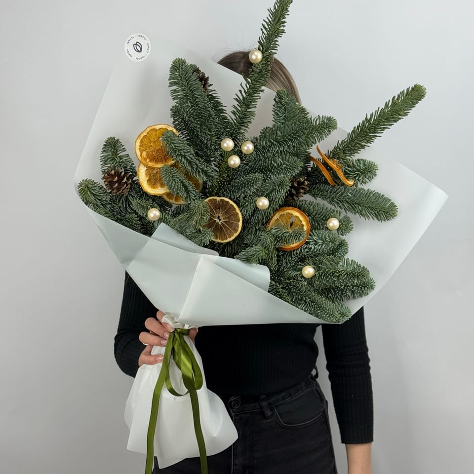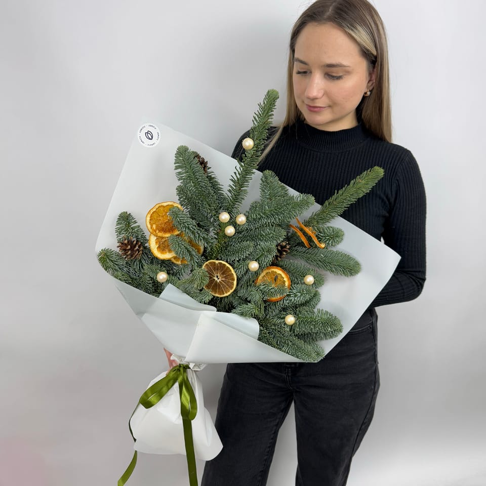 Новогодний букет с нобилисом и апельсиновым декором