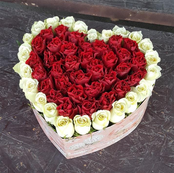 Розы в коробке в виде сердца