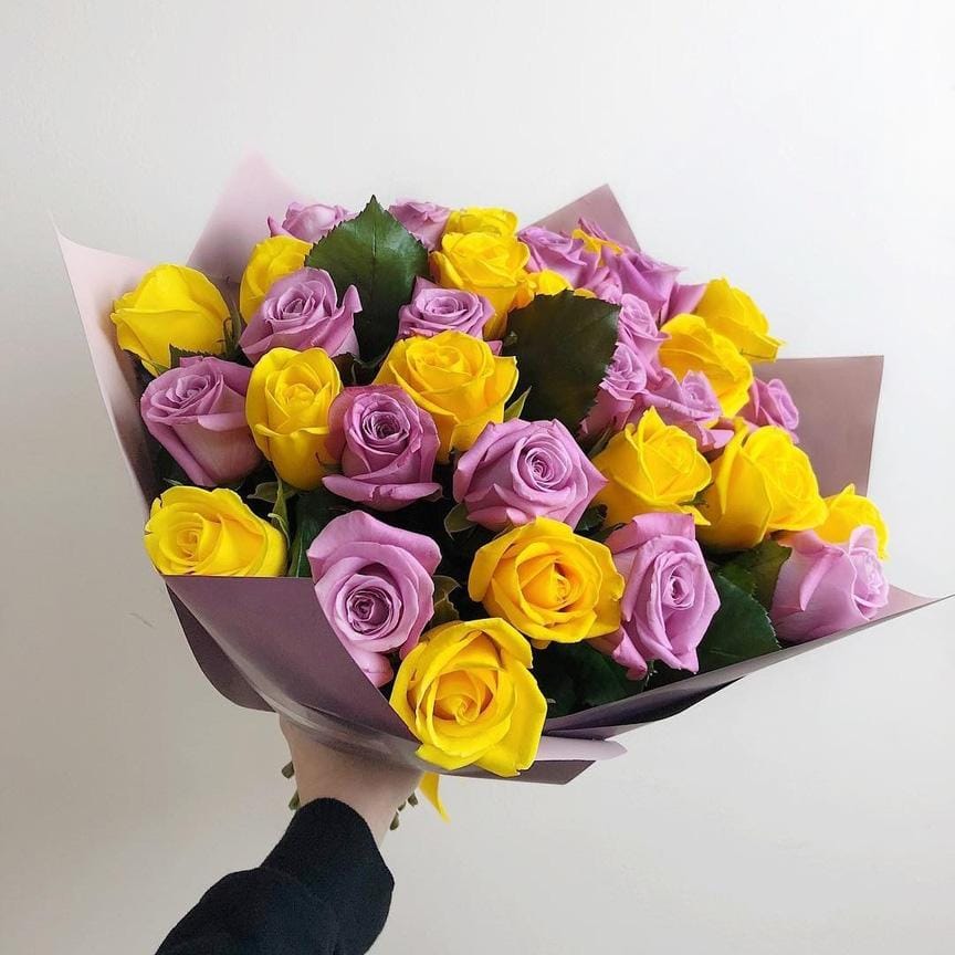 Розы Россия 50-60 см – 25 шт, пленка корейская, лента атласная фирменная