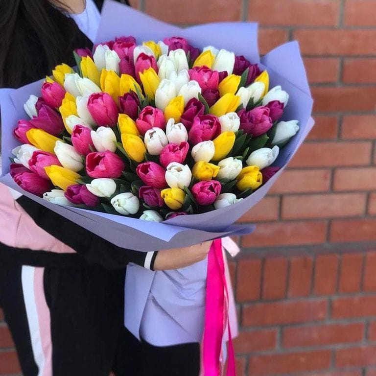 Яркий микс из 101 тюльпана
