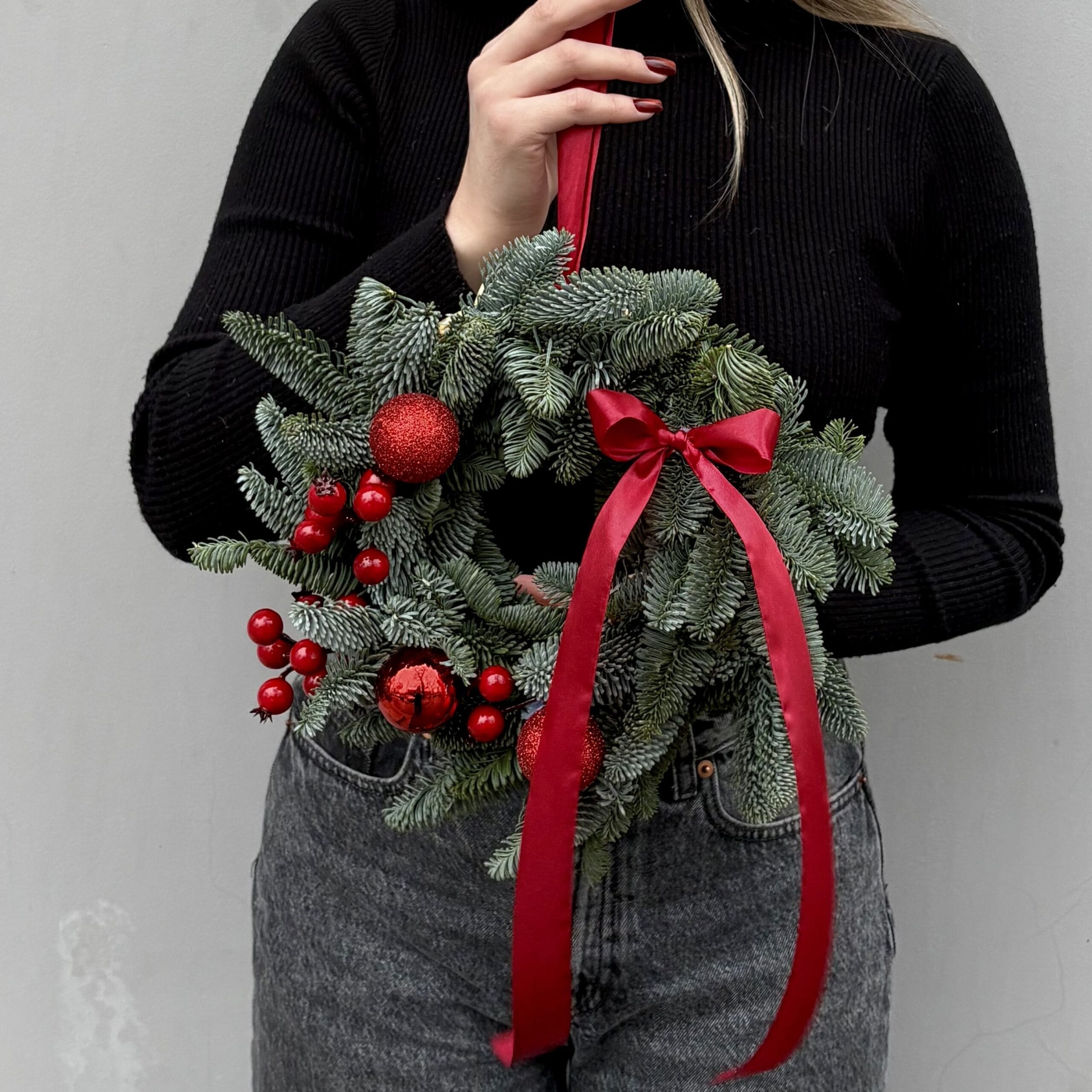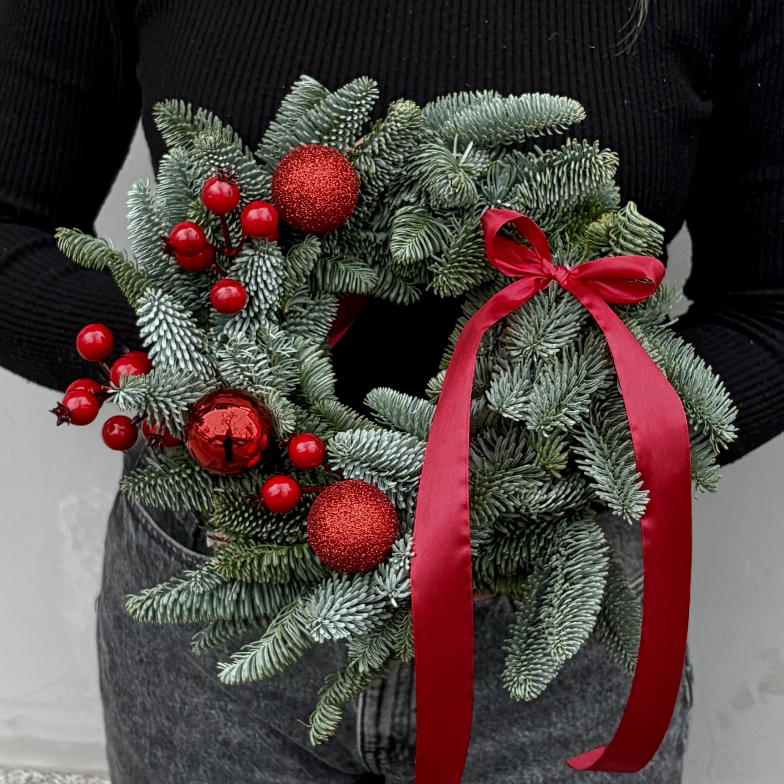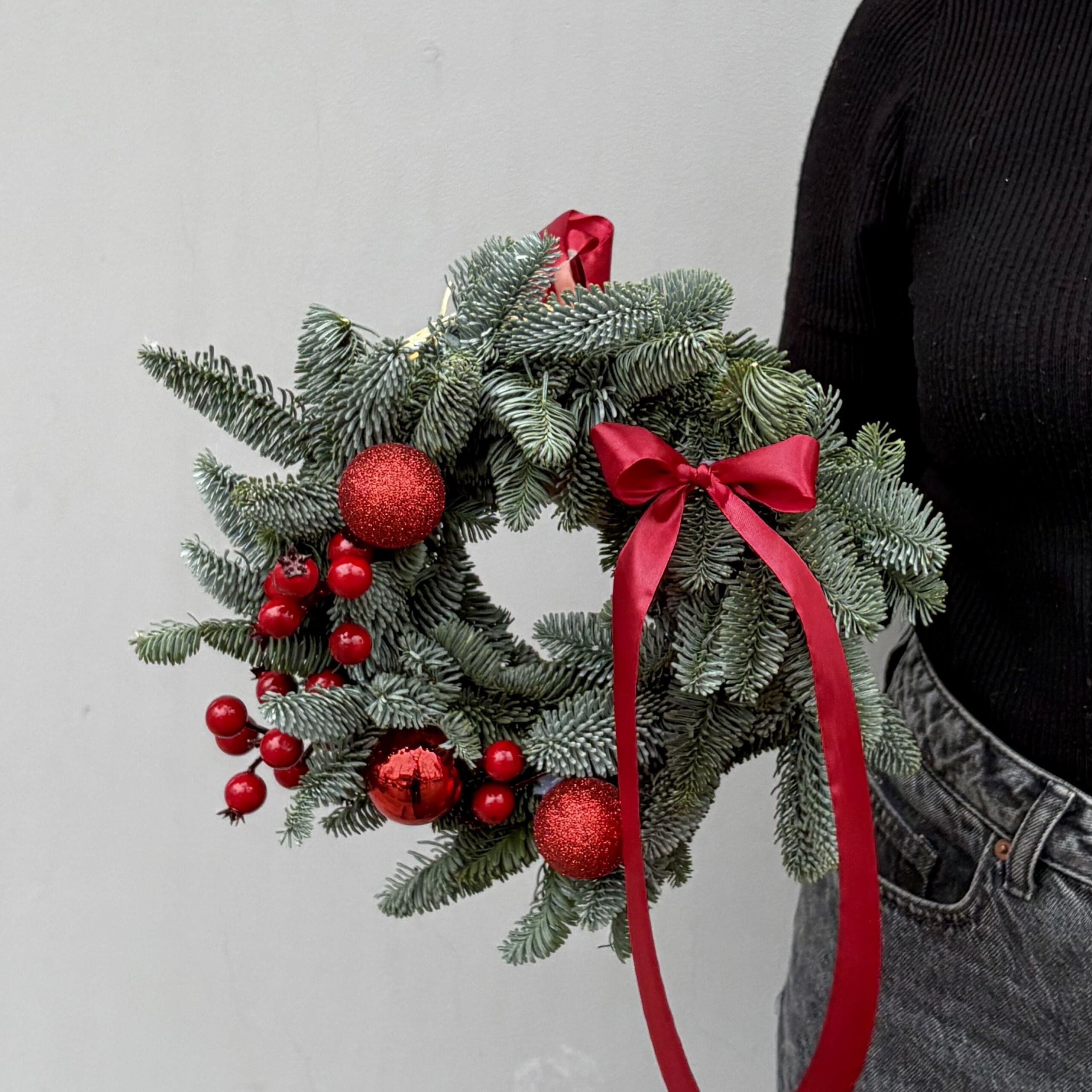 Погрузитесь в атмосферу настоящего праздника с нашим великолепным елочным венком, украшенным яркими красными деталями. Этот венок станет изысканным акцентом в вашем интерьере, наполняя дом теплом и радостью зимних праздников!