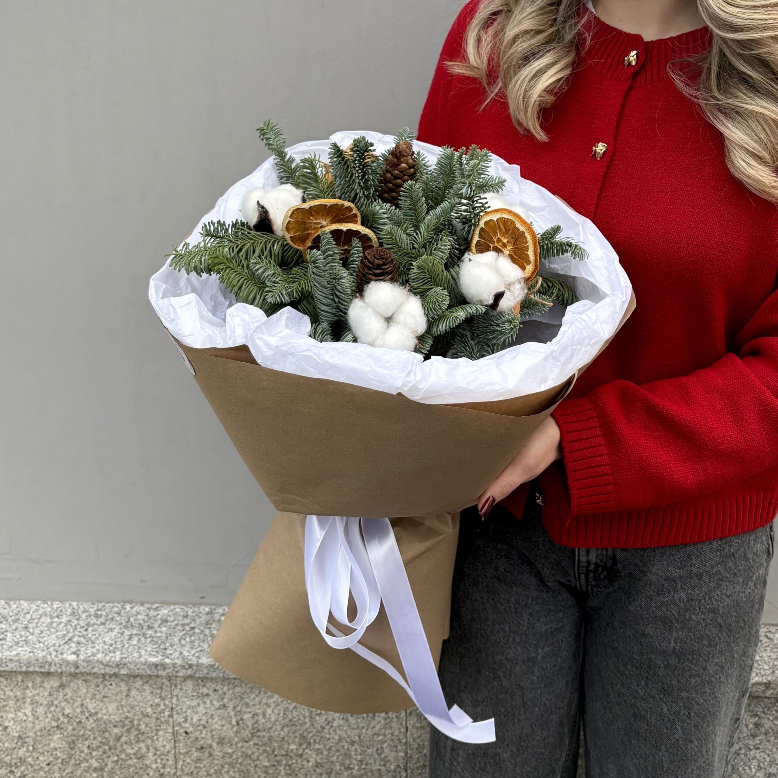 Ароматный и атмосферный зимний букет с апельсинами и корицей!